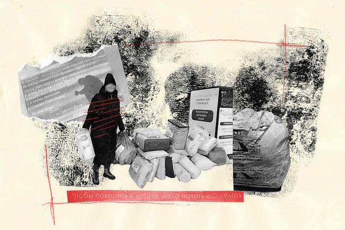 Татьяна считает, что большинство проблем военных, которыми сейчас занимаются НКО, должно решать государство: «Мы ведь и подзорные трубы для бойцов покупали, и чуть ли не автоматы. Поначалу это было логично, ведь никто к СВО не готовился. Сейчас эти вопросы вроде решаются, но очень много препон на пути». | | | Сын жителя Иркутской области Игоря Байбородина, 18-летний студент усть-илимского лесопромышленного техникума Даниил Трофимов, погиб в Украине 9 марта 2022 года. Его призвали на срочную службу в армию в декабре 2021-го, а позже, как утверждает иркутское издание «Глагол», молодой человек подписал контракт. Игорь Байбородин — член правления благотворительного фонда «СоДействие» в Усть-Илимске. В нём три основных отделения: кризисный центр «Мать и дитя», «Дом милости», где помогают пенсионерам, людям с инвалидностью и бездомным, и отделение помощи алко- и наркозависимым взрослым. Фонд сотрудничает с христианской церковью «Новое время», где жена Игоря Елена Байбородина читает проповеди. Она же — председатель фонда «СоДействие». После смерти Даниила фонд начал поддерживать российских военных. Елена Байбородина говорит, что для них с мужем это стало личной историей: Даниил, сын Игоря от первого брака, часто бывал у них в гостях. «Его мама Оля Посницкая — моя подруга, именно она теперь продвигает в городе разные проекты поддержки военных», — рассказывает Елена. После смерти сына Ольга открыла фотовыставку «Тихий фронт» с портретами в военной форме матерей, жён и детей погибших в Украине устьилимцев. Когда Байбородины поняли, что война «закончится не завтра», они с командой «СоДействия» открыли пункт сбора гумпомощи, в том числе стали отправлять одеяла военному госпиталю на участке фронта Соледар — Бахмут. — Некоторые люди меня упрекают, что мы помогаем военным. А моё мнение такое: военные — это люди, которые попали в сложные обстоятельства, — рассуждает Байбородина. — Да и осуждают до тех пор, пока беда не коснётся лично их. Как только там окажется твой сын или муж, ты первая принесёшь одеяло. Я думаю, что это наши ребята, мы должны им помогать, поддерживать людей, а не политические обстоятельства. Как будто в доказательство своих слов Елена вспоминает, как в начале войны вместе с коллегами из «СоДействия» собрала «Тележку добра». Обычно эту акцию фонд проводил под Рождество для малоимущих, но в тот раз он собрал около 300 посылок с «вкусняшками» и отправил их жителям самопровозглашённых ЛНР и ДНР. — Цель была — накормить врага (кого Елена называет врагом, не совсем понятно. — Прим. ред.). Хочется, чтобы люди не ожесточались против людей, — говорит Байбородова. В сентябре 2023 года она писала на своей странице во «ВКонтакте», что НКО передавала гуманитарную помощь украинцам, потому что, по её словам, «они не враги нам». | | | | Иллюстрация: Новая вкладка | | | | В небольшом Усть-Илимске с населением меньше 80 тысяч человек все благотворители друг друга знают и часто сотрудничают. Так, фонд Байбородиной работает с движением «Шьём и вяжем на фронт» и с Ольгой Посницкой, которая предложила Байбородиной установить в городе мемориал погибшим на войне устьилимцам. Вместе они составили заявку на грант в региональное минсоцразвития, губернатор Иркутской области Игорь Кобзев идею поддержал.