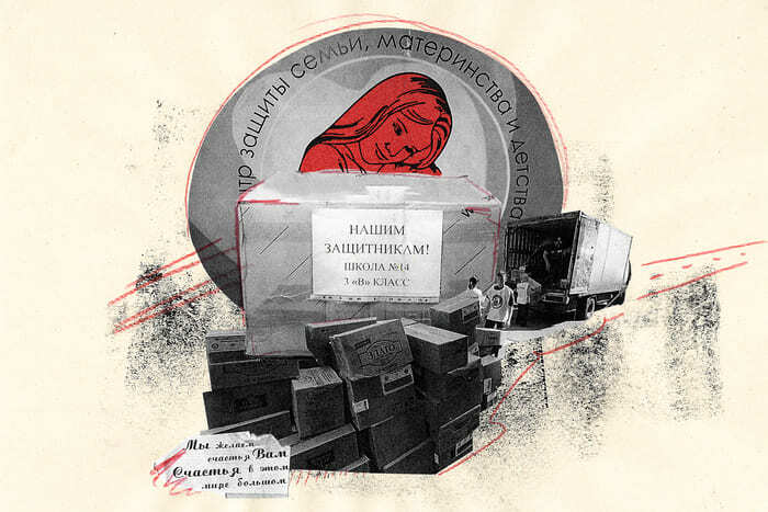 — Мы можем сколько угодно говорить, должно государство или нет, может или нет. Я живу так: что может моя рука, то я и делаю. Для меня как для благотворителя неважно: бывший заключённый, наркопотребитель или военный. Если человек обращается, я ему помогу. Наши подопечные априори становятся участниками всех проектов фонда. Это ещё одни руки, ещё одна голова. | | | | «Когда идёт СВО, мы должны объединяться» | | | Схожую позицию занимает руководительница гуманитарного склада «Светлица» и центра защиты семьи «С миру по нитке» в Вологде Людмила Ледовская. — Для меня важна помощь военным, потому что это Родина, наши ребята, друзья. Они отдают за нас жизни. Мы же одна команда: они там, за ленточкой, — мы здесь, в тылу. Душа болит за каждого, — говорит она. Людмила — жена вологодского священника Дмитрия Ледовского, у них семеро детей. «Светлица» и «С миру по нитке» создавались не для помощи военным: вообще-то они поддерживают многодетных мам, попавших в трудную жизненную ситуацию, и малоимущие семьи с детьми. В НКО работают социальный прокат, социальная парикмахерская, швейная мастерская, предоставляется юридическая и психологическая помощь. В октябре 2022 года на базе центра «С миру по нитке» открылся приют временного пребывания «Дом для мам». На сайте «Единой России» сообщалось, что он создан при поддержке партии, а на портале синодального отдела по благотворительности РПЦ говорится, что «Дом для мам» — общественно-церковный проект. Перед открытием его освятил муж Людмилы, отец Дмитрий Ледовский, после чего прочитал молебен «о наших воинах». В паблике центра во «ВКонтакте» часто публикуются посты против абортов, анонсы молебнов, там рассказывают о том, как Людмила ходит на рабочие встречи в местное отделение «Единой России», получает регулярные благодарности от мэра и губернатора, дружит с депутатами Госдумы и регионального Заксобрания. После признания международного движения ЛГБТ «экстремистской организацией» в паблике «С миру по нитке» появился пост, в котором это событие названо «самоочищением страны от злосмрадия». Людмила рассказывает, что у неё «много знакомых на СВО», которых она узнала благодаря наставникам своего сына-кадета. По её словам, весной 2022 года несколько военных попросили её о помощи. — Они маякнули, чего не хватает на фронте, и мы стали открывать сборы на разное оборудование для них, тепловизоры, вещи. Нам жертвовали и термокостюмы, и квадрокоптеры. Мы подружились с боевым братством Вологды и « Караваном добра». Сейчас в нашей швейной мастерской подопечные девушки шьют бельё для наших бойцов, а волонтёры нам уже завалили склад гумпомощью. Детские дома ЛНР и ДНР тоже на нас сами выходят, передаём им подарки, — рассказывает она. | | | | Иллюстрация: Новая вкладка | | | Летом 2023 года Людмила Ледовская при поддержке администрации Вологды открыла проект «Женская сила» — для жён и матерей мужчин, воюющих в Украине. «Косметологи приглашают наших мам на массаж, делают им маски. Просто чтобы женщины отдохнули, несколько часов попили чаю, поплакали», — рассказывает она. Сейчас Людмила готовится к открытию второго «Дома для мам» и отмечает, что больше ориентируется на помощь женщинам. Если бы не война, говорит она, то только этим бы и занималась. «Но когда идёт СВО, мы должны объединяться, поэтому ничего, потерпим. Мы все подстраиваемся 