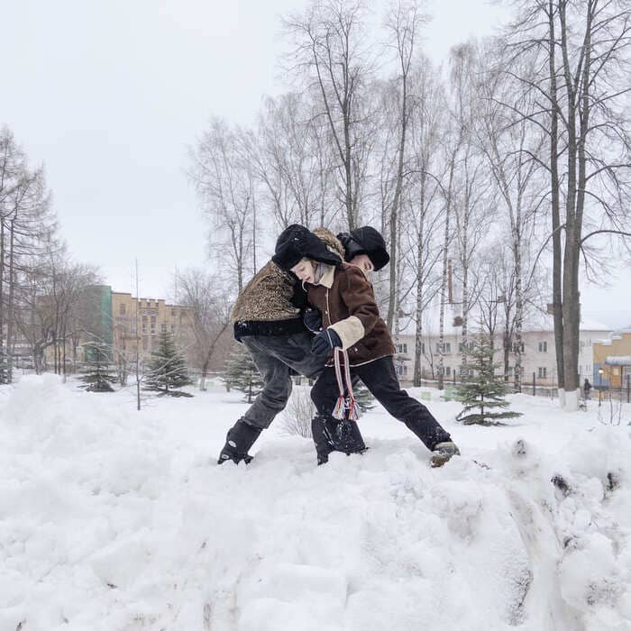 Светящаяся инсталляция посвящена жуткому водяному Вакулю, ростовая кукла которого покрыта искусственной чешуёй. Дерево Желаний с огромной раскрытой пастью внушает своим видом неподдельный ужас (как и безглазое глиняное изваяние Кудым-Оша), а в углу одной из экспозиций почётное место занимает вырезанная из дерева «Семейка чертей», созданная всё тем же Егором Утробиным. | | | | Дети, играющие в «Царь горы» на снежных отвалах в Кудымкаре Фото: Дмитрий Марков для НВ | | | | Сам скульптор редко бывает в Кудымкаре, из родного Пармайлова он никогда надолго не уезжал. А вот его дети давно разъехались: две дочери обзавелись семьями и осели в Перми, сын работает в Кудымкаре на мебельной фабрике, но тоже планирует уезжать дальше.