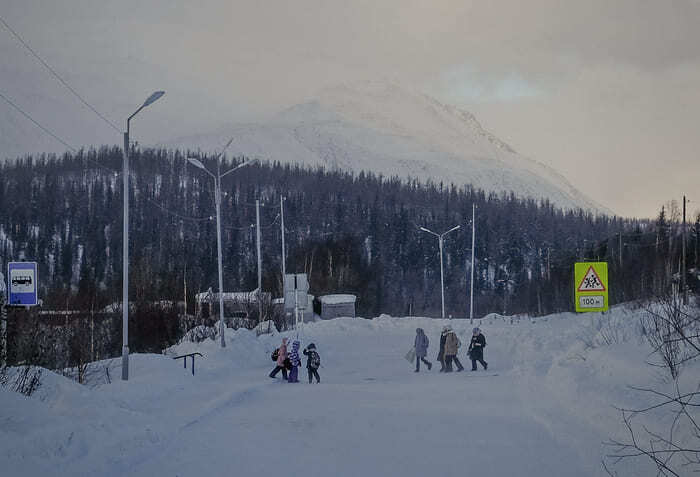Остальные районы города я осмотрел бегло. В основном запомнились аляповатые здания «капиталистического романтизма», патриотичные муралы на торцах зданий и почти ничего от пятисотлетней городской истории. В завершение прогулки я прочёл новость о том, что тело Алексея Навального выдали его матери. Вероятно, Кира Ярмыш рассказала об этом с некоторым опозданием, потому что вокруг морга уже было тихо и глухо. Больше в Салехарде мне делать было нечего. | | | | Дорога от Салехарда до Харпа с пересадкой в Лабытнанги — по ледовой переправе через Обь и дальше, сквозь низкорослые хвойные леса, — занимает чуть больше полутора часов. В расположенном на пути посёлке Обском автобус заполняют люди в униформе ФСИН, которые едут на работу. На переднем сидении болтают две пожилые женщины. Они обсуждают, как лучше потратить накопленную пенсию.