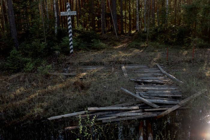 Пообщаться согласилась другая участница протестов на Шиесе — пенсионерка Светлана Бабенко. В 2018 году она была среди тех, кто создал группу «Чистая Урдома» — её участники противостояли строительству мусорного полигона на станции Шиес. В августе того же года в Урдоме состоялся первый митинг против полигона, на него пришли более тысячи человек (всего в посёлке живут около четырёх тысяч). По мнению Светланы Бабенко, власти «сами сподвигли, чтобы экологический протест перешёл в политический», потому что игнорировали требования людей. | | | | На машине к станции Шиес из Урдомы можно приехать, получив пропуск в подразделении «Газпрома». К железнодорожной станции ведёт автомобильная грунтовка Фото: Новая вкладка | | | | Когда в декабре 2018 года года в Урдому приехали представители строящегося экотехнопарка «Шиес» с презентацией проекта, жители Урдомы пришли на встречу и повернулись к гостям спиной. В январе 2019 года презентацию провели снова, но жителей Урдомы на неё не пустили: привезли «слушателей» на автобусах из других районов.