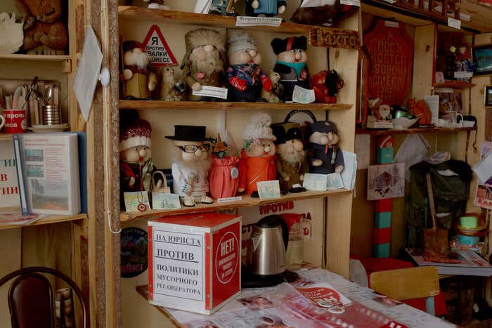 — Если бы я был на Шиесе, я бы мог неадекватно отреагировать на действия ЧОП или бездействие полиции со всеми вытекающими для меня последствиями, — вспоминает Павел. — Я находился здесь, чтобы быть всегда рядом с активистами как юрист. Я из Коряжмы приезжал в Котлас на суды. Для меня Шиес был здесь. | | | | Затонувший в заливе Лименда в Котласе дебаркадер Фото: Новая вкладка | | | В январе 2020 года Арбитражный суд Архангельской области признал строительство полигона на станции Шиес незаконным и постановил снести постройки. Инвестор полигона по решению суда занялся рекультивацией земель и восстановлением там леса. Экозащитники в Архангельской области переключились на другие локальные проблемы окружающей среды, а Павел Мизин продолжил защищать их интересы как юрист. В Архангельской области в 2024 году планируют построить три мусоросортировочных комплекса для отходов из региона: в Няндоме, Коряжме и под Архангельском. Губернатор Александр Цыбульский заверил, что на них будут перерабатывать более 40% отходов. Однако некоторые жители беспокоятся, что большую часть мусора там вообще не будут сортировать. Павел Мизин бывал на сортировочных комплексах и считает, что в основном всё будет уходить на полигон в перемешанном виде, потому что никто не будет разделять этот мусор после того, как он поступил на завод уже спрессованным. | | | | Юрист и правозащитник из Коряжмы Павел Мизин никогда не был на Шиесе, но знает о нём всё: во время шиесских протестов он защищал экоактивистов в судах Фото: Новая вкладка | | | Павел Мизин стал судиться с администрацией Котласского района, защищая интересы жителей Коряжмы. Он оспаривает выданное районными чиновниками разрешение на строительство мусороперерабатывающего завода возле города. — Они утверждают, что будут сортировать мусор в объёме 100%. Мы говорим: хоть 110% сортируйте — что в результате получится? Они ответить на это не могут, — поясняет Павел Мизин. Жители Коряжмы не только продолжили судиться с чиновниками, но и записывали к ним видеообращения и выходили на митинги против этого завода. Несмотря на вмешательство главы Следственного комитета Александра Бастрыкина, намерения властей пока остались прежними. | | | | Жители Урдомы собрали большую экспозицию о протестах на Шиесе. Они хотят сохранить неудобную для властей память об этих событиях Фото: Новая вкладка | | | | В «Музее Шиеса» много кукол, статуэток и других поделок, посвященных экоактивистам Фото: Новая вкладка | | | | Среди людей бытует мнение, что Шиес и экоповестка в целом — это не политика, говорит Павел Мизин. По его словам, после победы на Шиесе многие местные жители решили для себя, что программа-максимум выполнена. Сам он думает по-другому: