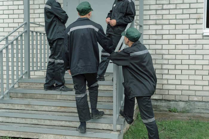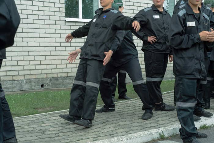 Во второй половине дня — мастерские на выбор: жонглирование, музыка, шахматы, фотография, спортивная «мафия», рисование или плетение фенечек. Потом на стадионе играем в подвижные игры для всех и расходимся на команды по интересам: волейбол, футбол, фрисби, слэклайны, турники и просто разговоры на скамейках. | | | | Юноши ждут построения на крыльце у входа в здание отряда Фото: Полина Сойреф для НВ | | | | В воспитательных колониях отбывают наказание ребята, совершившие преступление в возрасте от 14 до 18 лет (уголовная ответственность в России наступает с 16 лет, за тяжкие преступления — с 14). Здесь можно остаться и до 19 лет, если срок заканчивается в течение года после наступления совершеннолетия. | | | | Воспитанники носят одежду с нагрудными отличительными знаками: их нужно снимать перед стиркой и пришивать обратно после Фото: Полина Сойреф для НВ | | | | По официальным данным ФСИН, на 1 января 2022 года в 13 воспитательных колониях в России отбывали наказание 883 несовершеннолетних (тогда же в исправительных колониях для взрослых находилось 39 тысяч осуждённых в возрасте 18−25 лет, что в 44 раза больше). Ещё в 2007 году в стране было 62 воспитательные колонии, а воспитанников — более 16 тысяч, но с тех пор были проведены реформы, связанные с внедрением ювенальной юстиции, одним из основных элементов которой является дружественное к ребёнку правосудие. За многие преступления для несовершеннолетних возраст уголовной ответственности подняли с 14 до 16 лет. | | | | Анна и воспитанники на стадионе. Общий сбор перед началом игры Фото: Полина Сойреф для НВ | | | | В Архангельской воспитательной колонии находятся воспитанники со всего Северо-Запада: из Петербурга и Ленинградской области, Мурманска, Карелии, Республики Коми, Новгородской, Псковской и Вологодской областей. Её вместимость — 181 человек, сейчас здесь находится около 70 подростков. Все очень разные. Кто-то из детдома или из неблагополучной семьи, а к кому-то приезжают родители. Есть ребята из деревни и городские. У кого-то есть или вот-вот родятся собственные дети. Одни после совершеннолетия хотят остаться тут до конца срока, другие рвутся «на взрослую зону». | | | | Юноши ждут построения. На майках наклейки, оставшиеся после только что проведённой игры, — с именами и профессиями Фото: Полина Сойреф для НВ | | | | В первый день старший воспитатель проводит нам экскурсию по колонии. В жилом корпусе — комнаты с идеально заправленными кроватями, небольшой спортзал, музыкальный кабинет, общая аудитория, комната для приёма пищи, помещения для хранения одежды и личных вещей повседневного использования. Кроме этого — кабинеты психологов и музей. В музее — экспозиция, посвящённая истории права в России, исторические макеты (что-то делали ребята, есть и подарки из взрослых колоний), фотографии ветеранов Великой Отечественной из семей мальчиков. На территории колонии — столовая, стадион с тренажёрным залом, ПТУ, школа, церковь, магазин и «утиная ферма», где живут несколько уток.