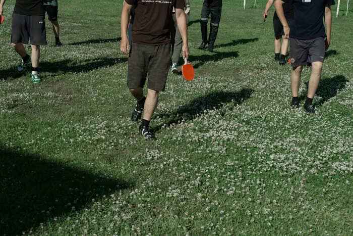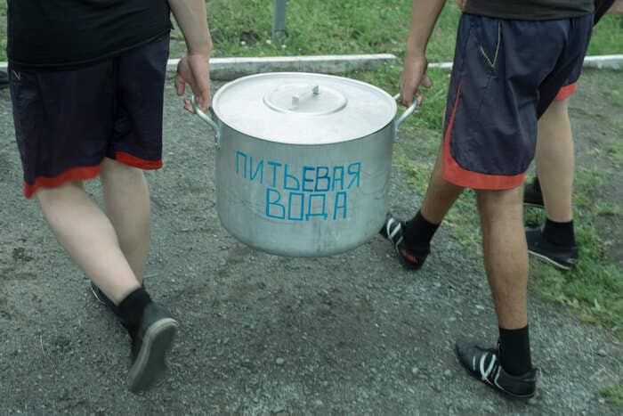 Летний лагерь для воспитанников колонии в Архангельске делают восемь специалистов с очень разным бэкграундом и немного утопической идеей, что такие проекты могут на что-то повлиять. | | | | Юноши слушают правила игры, которые им рассказывают педагоги Фото: Полина Сойреф для НВ | | | | В тёплое время ребята тренируются на улице, зимой есть комната для занятий в здании отряда Фото: Полина Сойреф для НВ | | | | Театральный педагог Роман Александров приезжает в Архангельскую воспитательную колонию в четвёртый раз, он занимался организацией предыдущих трёх выездов — образовательных, в учебное время. По его словам, в прошлый раз педагоги и художники предложили ребятам поучаствовать в творческих мастерских, создать арт-объекты и сделать из них тотальную инсталляцию. Они много разговаривали с воспитанниками, слушали обратную связь, и Катя Поручик, ещё один педагог, предложила «лагерный формат»: время, когда можно знакомиться, задавать вопросы, действовать спонтанно и идти за интересом. | | | | Кастрюля с питьевой водой на стадионе Фото: Полина Сойреф для НВ | | | | Заявку на грант в Фонд Потанина Анна подавала с посылом «чтобы ребята хорошо провели время». Члены команды, кто уже был в этой колонии, рассказывают нам, что администрация здесь настроена на сотрудничество, и нам действительно рады. Воспитатели потом шутят: «Конечно, вы на неделю избавили нас от работы, обычно в каникулы тут такой шалман — кому домой позвонить, кому трусы зашить».