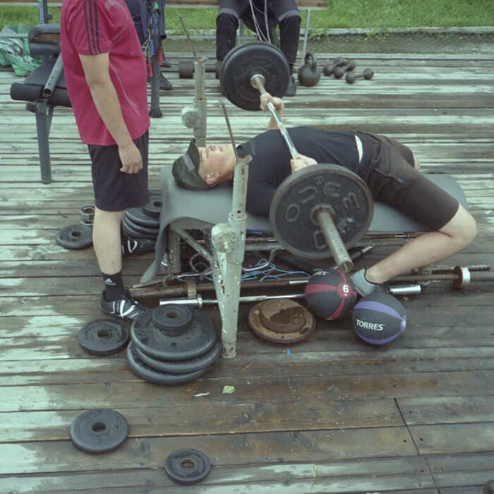 После окончания лагеря у Гриши «комок из мыслей и чувств». Он сочувствует ребятам, рассуждает, что даже в 17−18 лет они ещё дети, и в колонию их привели обстоятельства, которые создавали не они сами, а их родные и окружение. | | | | Аркадий жмёт штангу, его рабочие веса — 85 кг от груди и 75 кг стоя. Товарищ страхует его Фото: Полина Сойреф для НВ | | | | — Есть ощущение, что это лотерея! Тебе повезло родиться в нормальной семье, встретить хороших людей, и вот ты с этой стороны, а они — с той, — говорит Григорий.