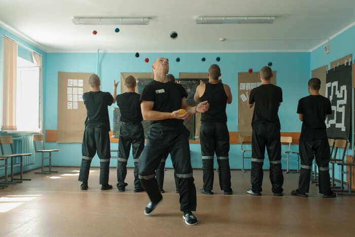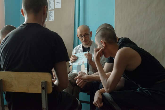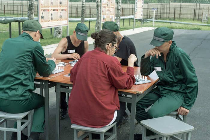Как руководителю проекта ей было важно, чтобы команда, особенно те, кто едет в колонию первый раз, получили этот опыт и «увидели в пацанах обычных подростков, кайфанули от взаимодействия с ними и не боялись таких проектов, участвовали в них». Так и произошло. | | | | В свободное время на стадионе воспитанникам можно не переодеваться в спортивную форму, но тогда нельзя бегать и играть. Кто-то просто проводит время на улице, читает книги или играет в шахматы Фото: Полина Сойреф для НВ | | | | — Как будто мы на съёмках фильма. Колония — это декорации, у всех костюмы, все играют свои роли, а мы отличаемся в своей одежде и всё время не попадаем в сценарий. Получается, будто наблюдаешь всё происходящее со стороны, — рассказывает Мария Колосова, театральный педагог.