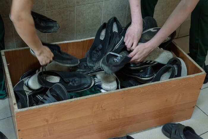 В этот раз Анна спонтанно затеяла мастерскую по фенечкам, и она оказалась самой популярной: ребята плели браслеты в перерывах, на стадионе, в любой свободный момент. «Когда они живут в колонии, они ничего не могут сделать для своих родных, и вот они плетут фенечки для мам, сестёр, девушек своих, и это такая крутая возможность что-то подарить близкому, даже если ты в заключении», — рассуждает Анна, всё равно удивляясь активному участию пацанов. | | | | Юлия проводит занятие по шахматам. Среди ребят есть шахматисты, они сами занимаются, решают шахматные задачи и участвуют во всероссийском шахматном турнире среди исправительных колоний Фото: Полина Сойреф для НВ | | | | Ящик со спортивной обувью: у кого-то есть свои кроссовки, остальные ищут нужный размер здесь Фото: Полина Сойреф для НВ | | | | Роман с ребятами на вечернем мероприятии обсуждают книгу Марии Ивашкиной «Комореби, собремеса, хэзеллих» — о существующих в разных языках словах для обозначения сложных чувств Фото: Полина Сойреф для НВ | | | | — Лично для меня в этой поездке важно, что я могу испытывать тепло и привязанность к человеку, который сидит, например, за убийство. И что на самом деле какая-то маленькая случайность в жизни, чуть больше силы приложил — и вот ты уже сидишь за тяжкие телесные, повлекшие смерть человека по неосторожности. Это моё личное сожаление, что многие сидят по какой-то глупости, — говорит Анна.