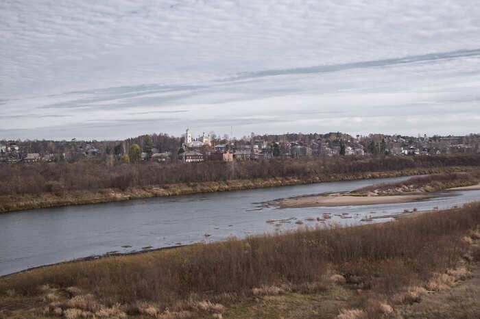 — Пока монтировали эту экспозицию, — говорит смотрительница, — было семь портретов. Сейчас уже одиннадцать. | | | | Типичный пример застройки кологривских окраин — старый деревянный дом Фото: Наташа Лозинская для НВ | | | | Вид на Кологрив и пойменные озёра Фото: Наташа Лозинская для НВ | | | | К самой гусиной ферме съездить не удалось, иначе мы могли не успеть встретиться с Паршиными в Мантурове. Водитель Сергей успокоил меня тем, что ферма всё равно за высоким дощатым забором и без приглашения делать там нечего. Мы едем назад.