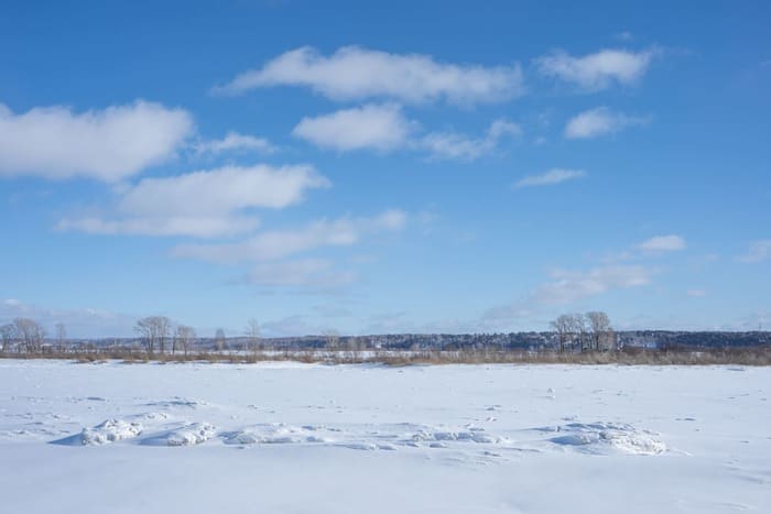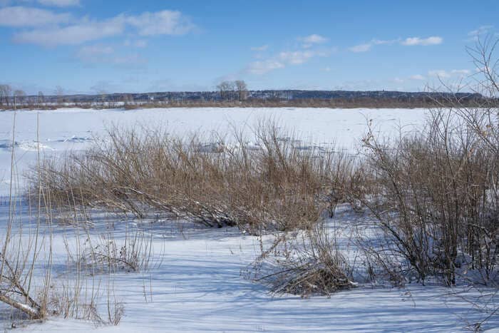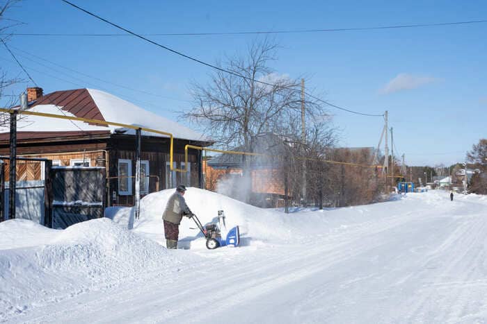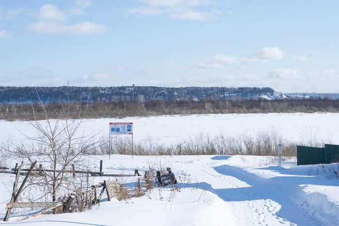 Улицы в Кафтанчиково длинные, в белоснежных сугробах. Среди простых одноэтажных деревенских домов попадаются двух- и трёхэтажные коттеджи — сказывается близость города и денег. В будний день на улицах почти безлюдно, только школьники возвращаются с уроков да некоторые пенсионеры чистят снег у своих ворот. Тротуары (если они есть) тоже завалены снегом, поэтому редкие прохожие идут по краю дороги. | | | | Берег Томи — последней реки в России, в которой искупался Алексей Навальный Фото: Новая вкладка | | | | Пожилой мужчина в чёрной вязаной шапке и охотничьем костюме сгребает лопатой снег. Увидев нас с фотографом, он улыбается и тут же начинает отчитывать: