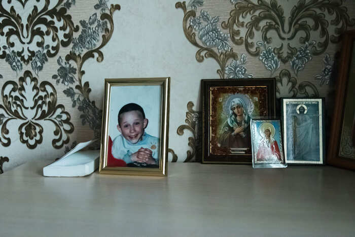На комоде в гостиной у Ларисы стоят иконы и фотография младшего сына Дениса в детстве. Этот снимок — одна из немногих семейных фотографий, оставшихся у Ларисы из прошлого: все фотоальбомы сгорели в частном доме, где она когда-то жила с мужем и четырьмя детьми. | | | | Свою мать Лариса не помнит: со слов родных, та «захлебнулась от рыготины» во время запоя в начале 1970-х, когда дочке было два года. Семья тогда жила в другом городе — Спасске-Дальнем. Отец маленькой Ларисы в это время сидел в колонии за неуплату алиментов, поэтому девочка стала жить в семье тёти и называть её мамой.