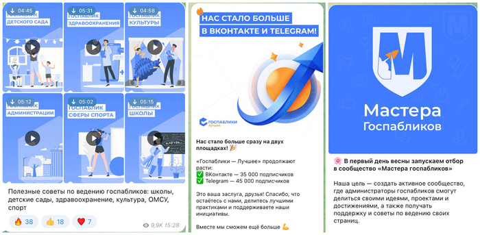 — Там [в соцучреждениях Карелии] тётки взвыли пиздец просто, потому что они не должны этим заниматься. Если план не выполнялся, то на еженедельной планёрке организацию отчитывали, — добавляет Наталья. | | | | Скриншот: телеграм-канал Полезные материалы от «Госпаблики — Лучшее», Госпаблики — Лучшее | | | | Ставок для специалистов по работе с соцсетями в большинстве госучреждений Карелии, как и в других регионах, не было, поэтому эту неоплачиваемую работу пришлось брать на себя руководителям или их помощникам.