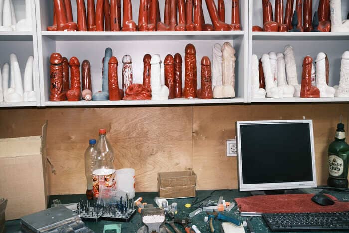 Вадим Канунов благодарен не только советским специалистам, но и «остаткам» советской промышленности, за счёт которой выжил его бизнес и которую, по его мнению, сохранил Владимир Путин: «Он всю эту бучу поднял — по сохранению хайтека, оборонки, поэтому у меня его портрет в кабинете и висит». | | | | Два 3D-принтера почти бесшумно, слой за слоем, печатают пластиковые прототипы новых фаллоимитаторов: печать запущена несколько дней назад и пока различимы только очертания мошонки. Дизайнер Владимир говорит, что на печать большой модели уйдёт примерно неделя. Ещё года четыре назад, вспоминает он, процесс был сложнее: две работницы вручную вылепливали фаллосы из пластилина, по этим моделям изготавливали силиконовые формы, а затем заливали их воском. «Очень низкая была производительность», — поясняет мужчина.